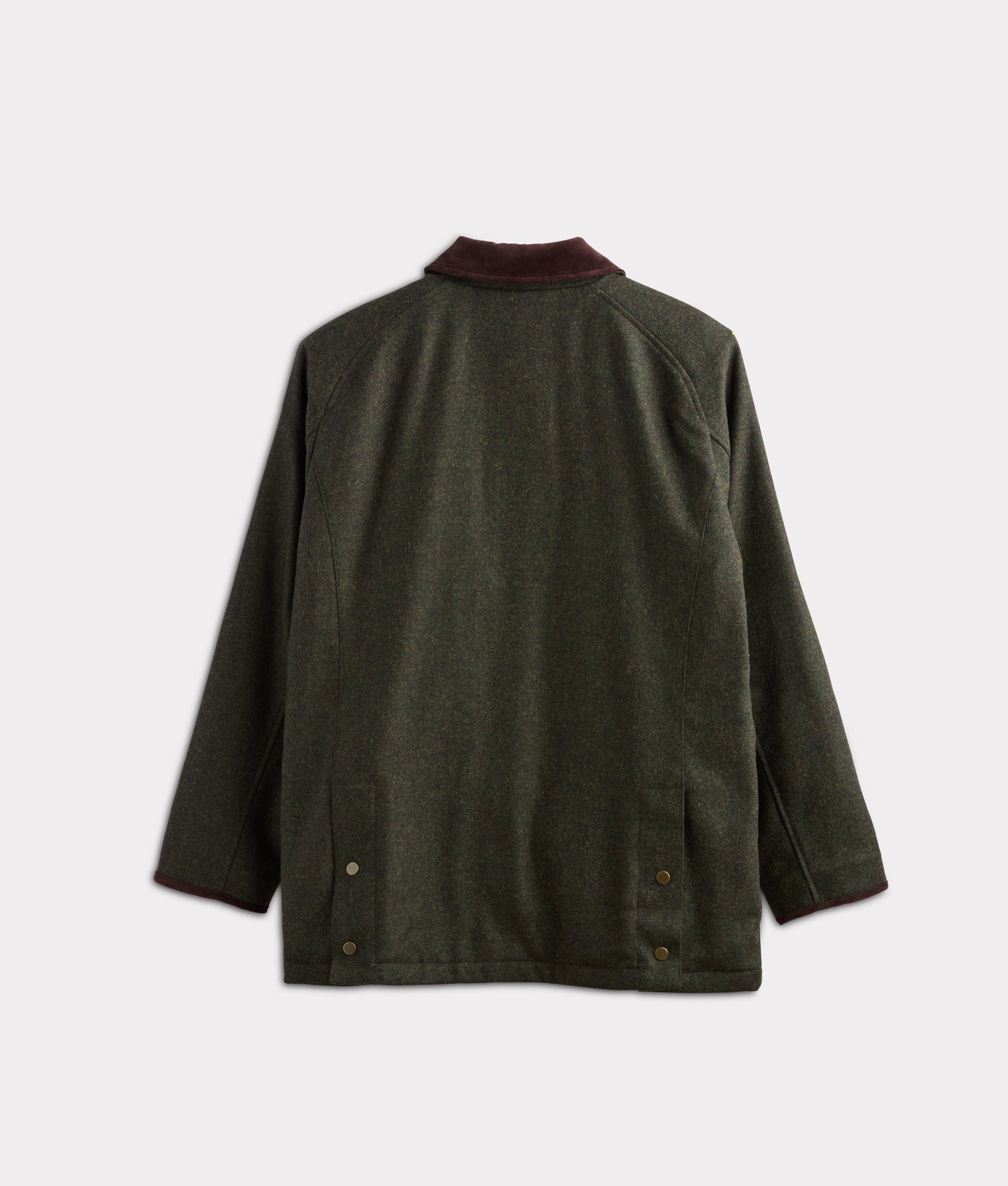 This structured. military-inspired wool jacket in a deep forest green hue features a smart. utilitarian design. Made from 100% virgin Shetland wool. this Italian-crafted jacket brings heritage craftsmanship to a contemporary outerwear staple. The rich wool texture offers natural insulation. while the clean design keeps it versatile for urban or outdoor settings. Made in Italy.