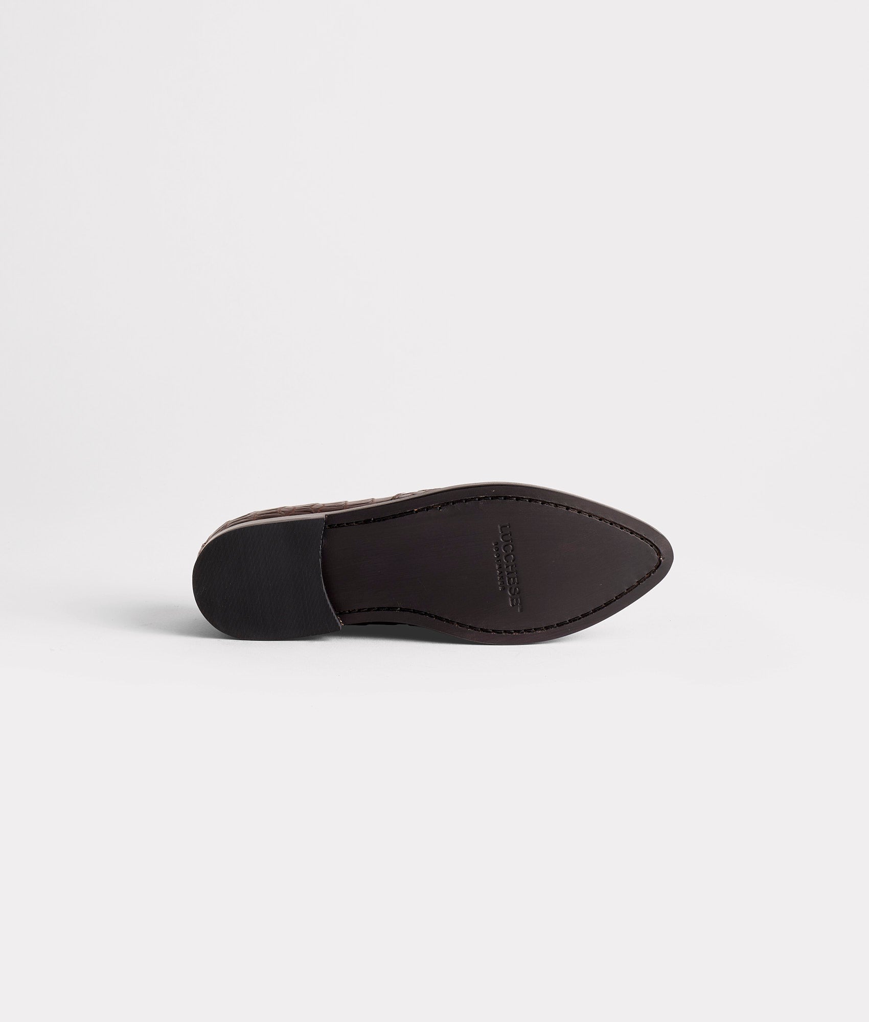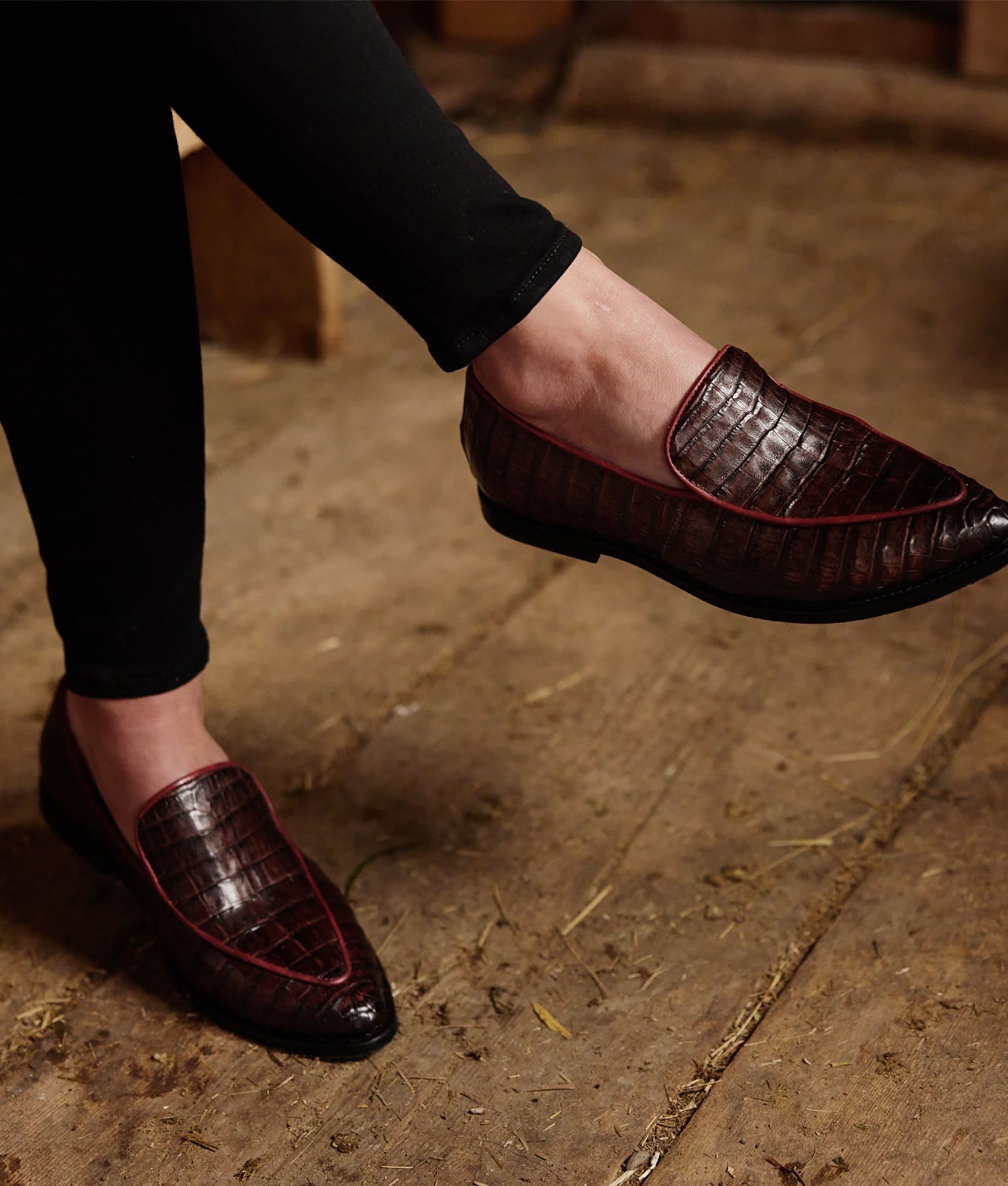Karmen is a vintage-style loafer handmade from caiman leather. A Western look without the quarters. this shoe offers a seamless transition from saddle to city. Slip into Karmen after a long day in the pasture or before a quick trip to the store.?