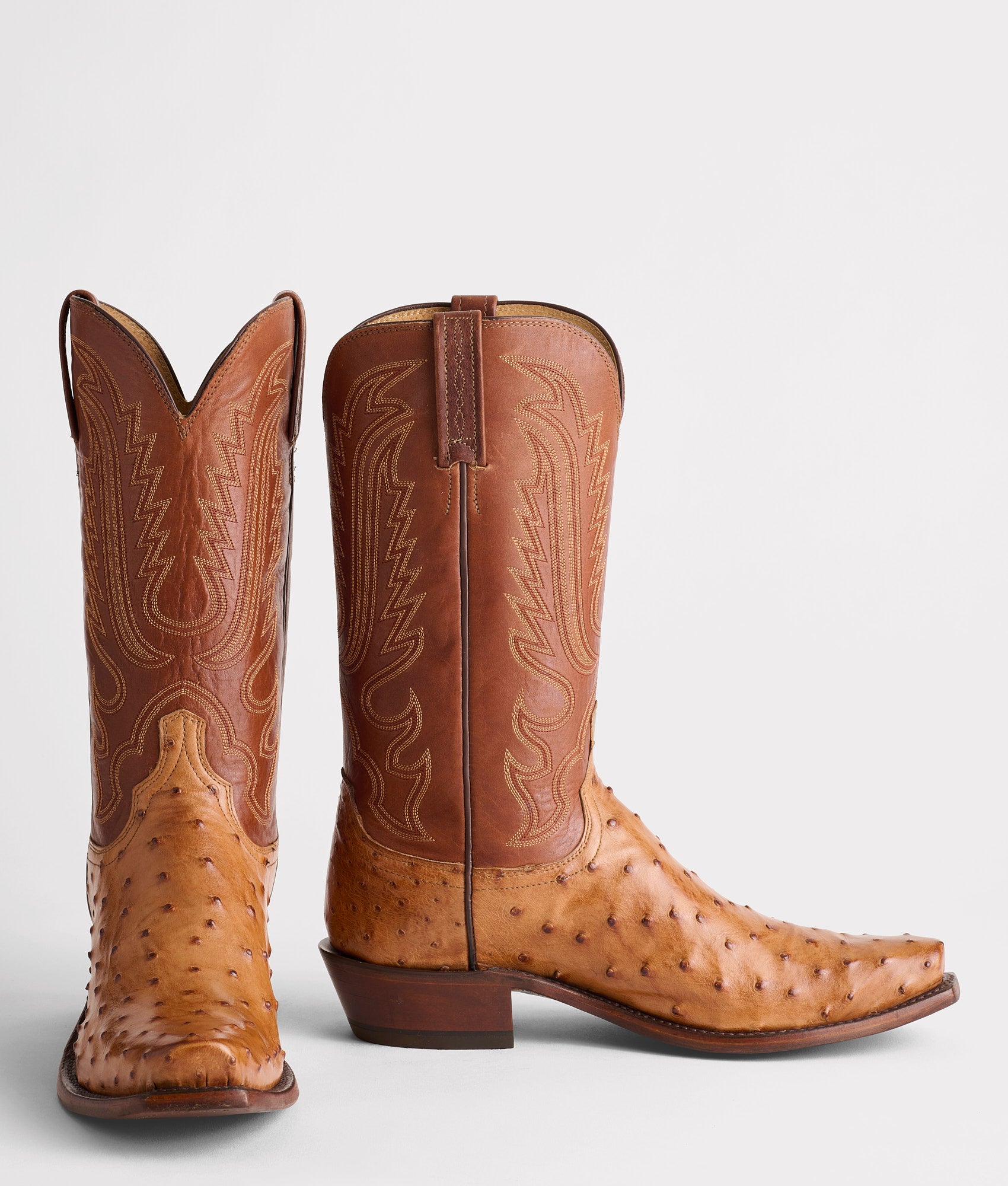 A boot with a Western gunslinger past. the Luke calls ramblers. gamblers. and merchants to the open road in style. Made from the finest Full Quill ostrich leather. this hand stained Western silhouette is a foundational piece to the cowboys repertoire. Handmade in Texas.