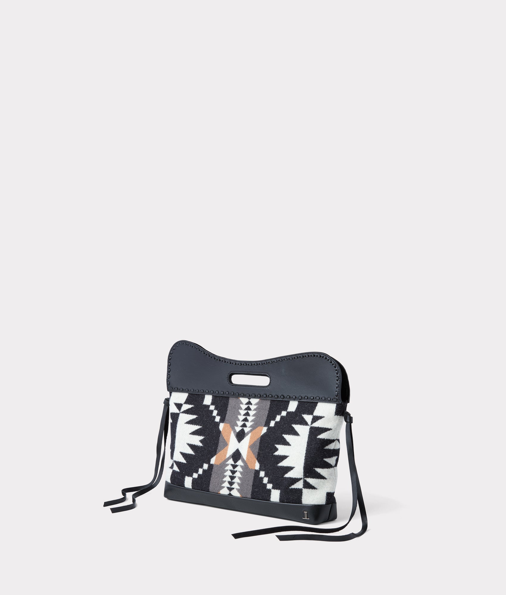 Featuring the Spider Rock Pattern??a tribute to the rugged beauty of the American Southwest??the Lucchese x Pendleton Oversized Clutch brings together two worlds: the rich tradition of Pendleton’s wool textiles and the modern luxury of Italian Nappa leather. This piece showcases one of Pendleton’s signature patterns. rooted in over 150 years of history. while the top magnetic closure and detachable shoulder strap offer both style and versatility. The brushed nickel adds a touch of understated elegance. reminiscent of the American West’s enduring spirit. This clutch makes a bold statement. whether carried by hand or worn as a shoulder bag. Made in USA.
