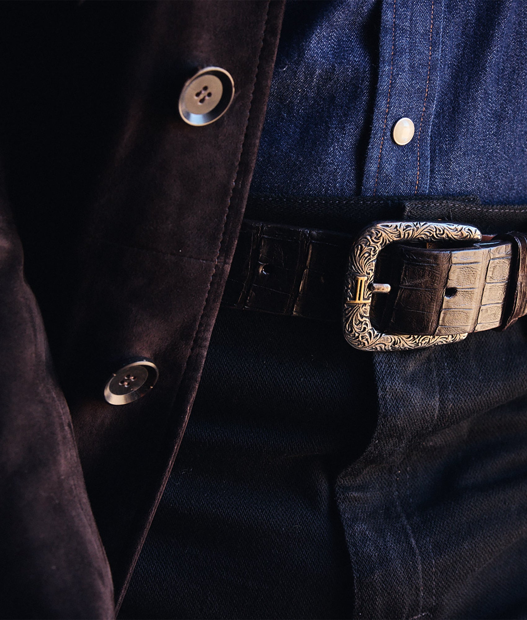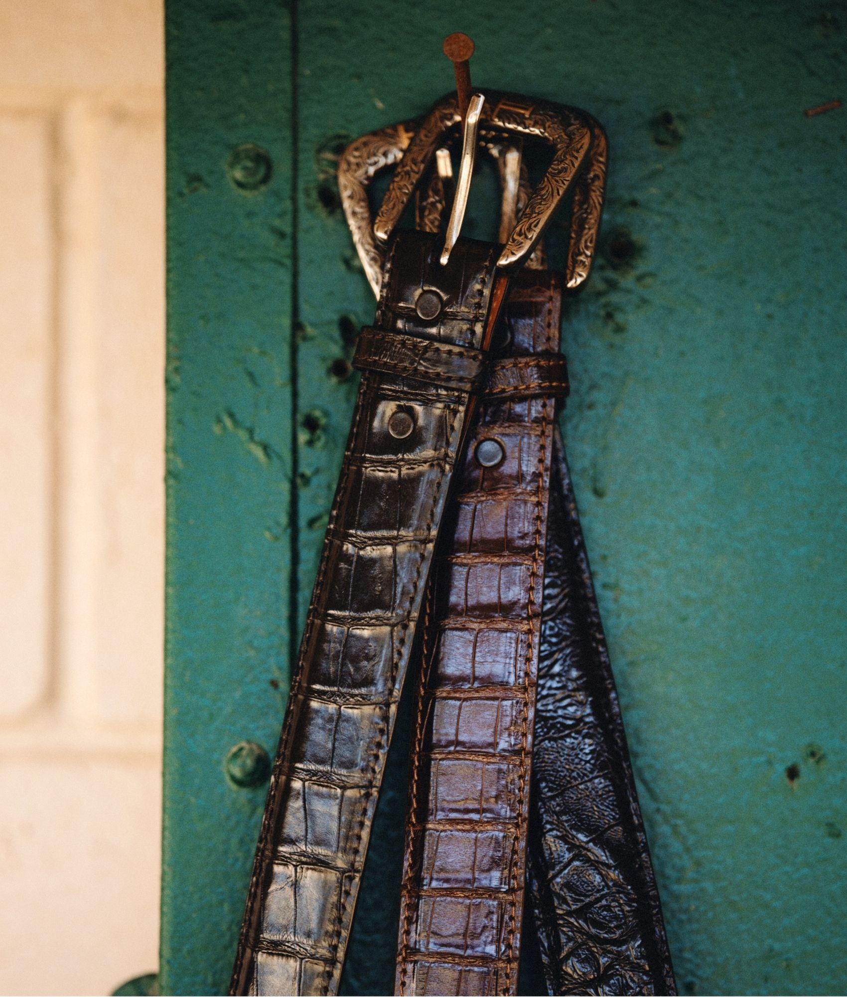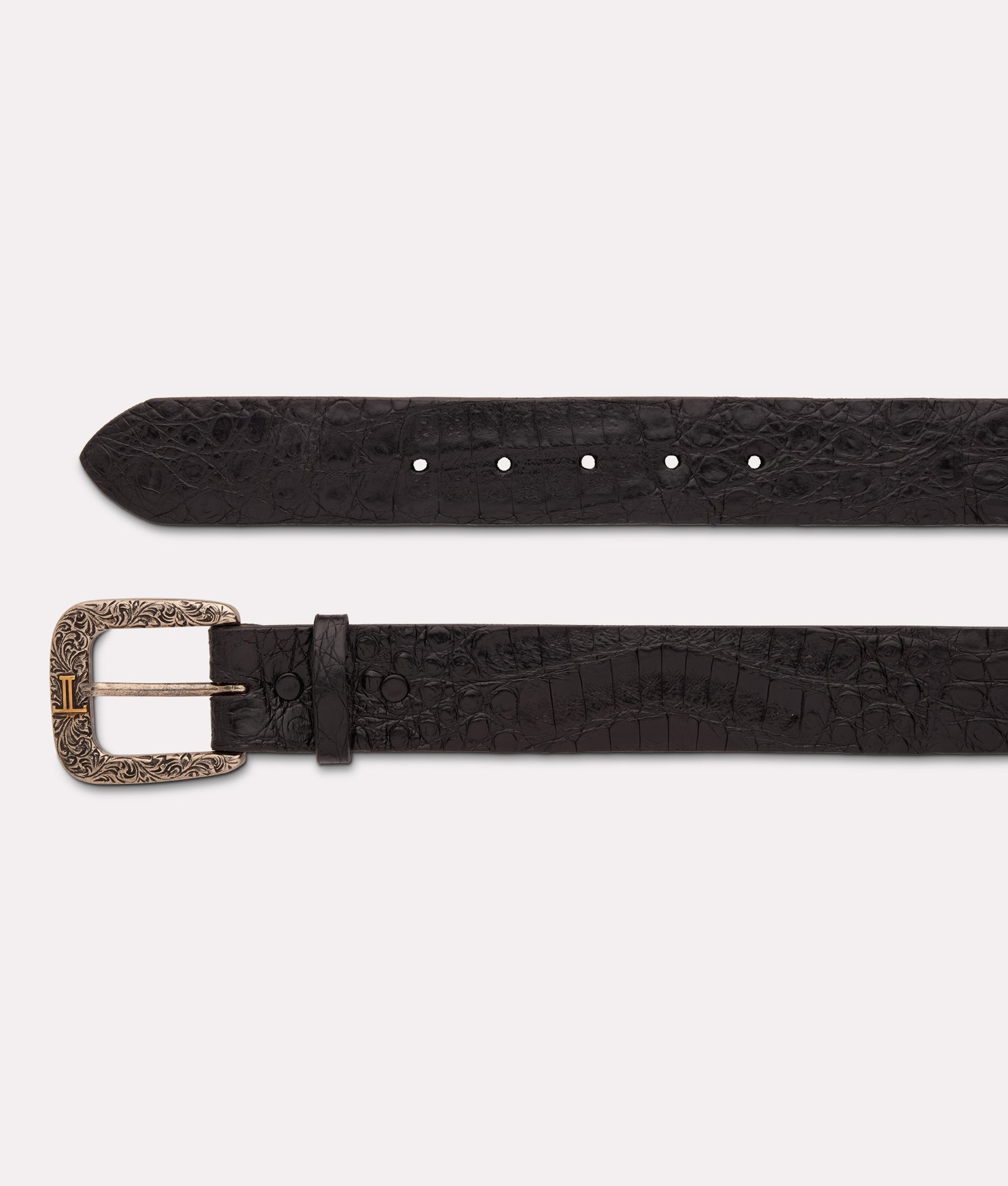 Lucchese’s exotic belt made with caiman crocodile. The belt’s ultra belly caiman leather not only provides sleek style. but also ensures durability for long lasting use. Adorned with a detailed silver plated buckle. this belt pays homage to the classic West. Handmade in Texas. 1.5 wide Removable buckle