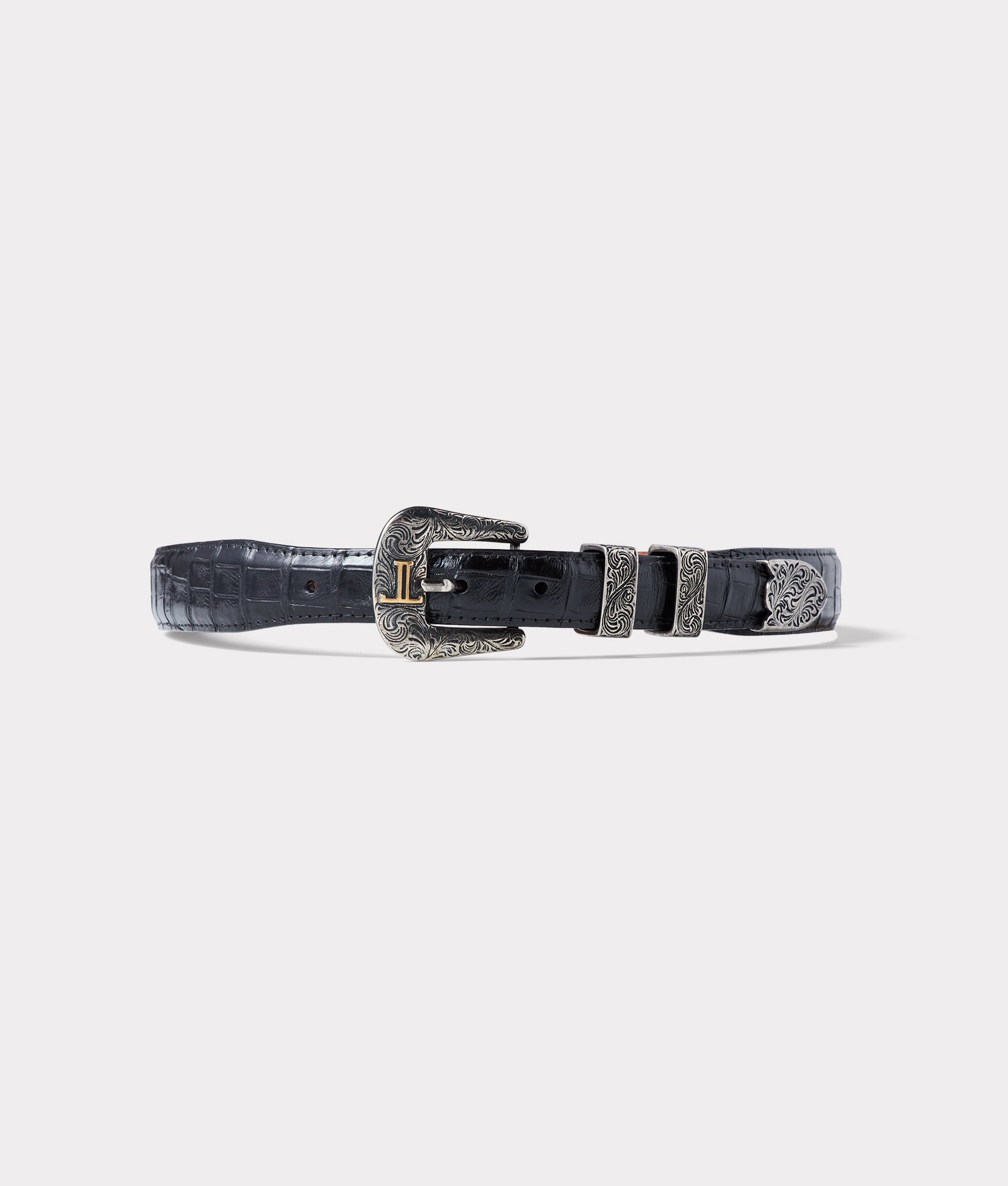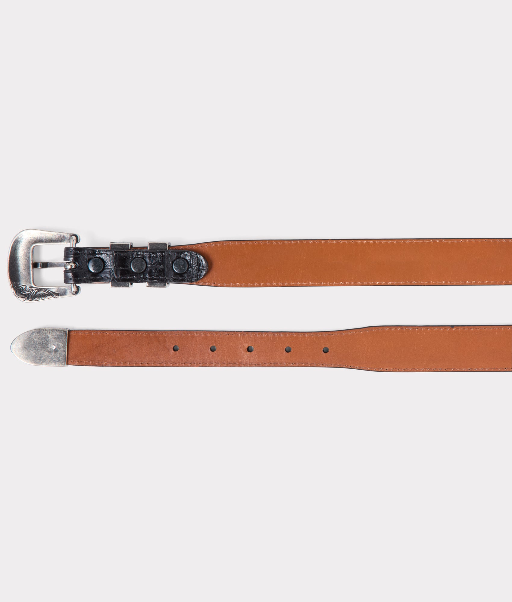 Lucchese’s Tapered Belt is made with Ultra Belly Caiman leather. The belt’s leather is complemented by an ornate nickel-plated buckle giving it the ultimate Western touch – making it versatile and stylish. This belt was designed to be worn with matching exotic boots. but can also be paired with jeans or a dress. Handmade in Texas.
