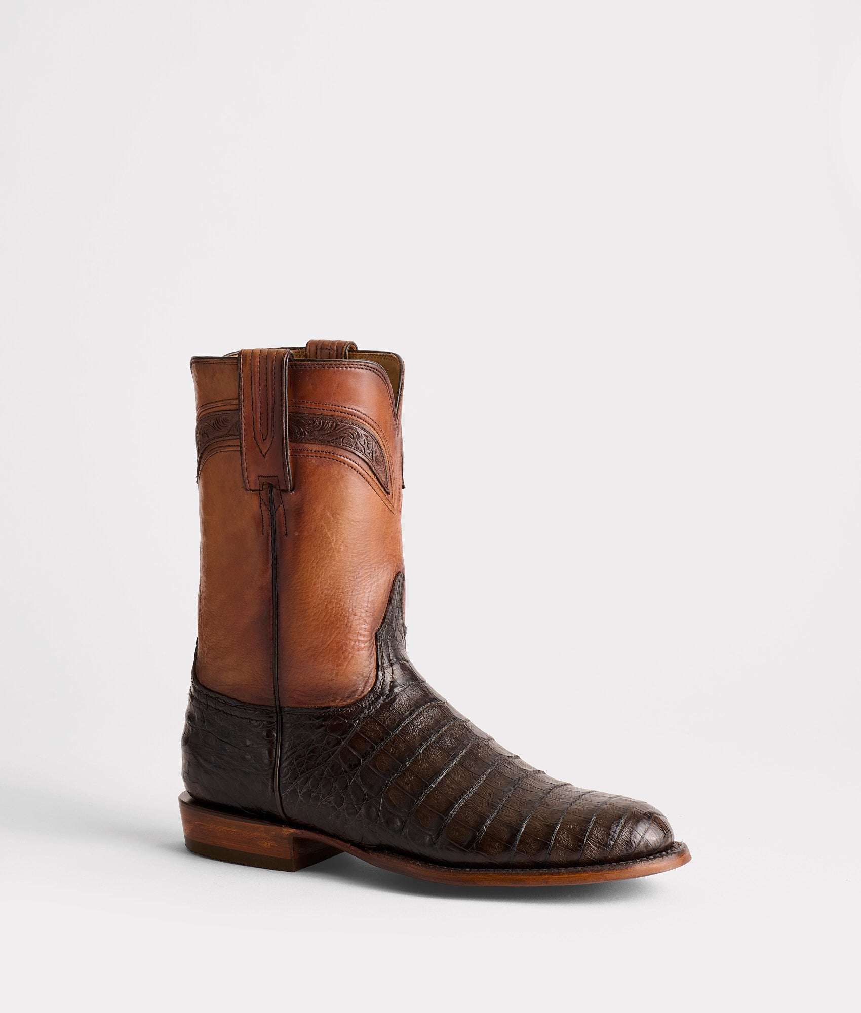 The Wilson is crafted from rich Ultra Belly Caiman hide and beautifully tooled cowhide leather – elite Western sophistication through and through. Premium benchmade components that have resulted in a favored style amongst roper silhouette’s. Handmade in Texas.
