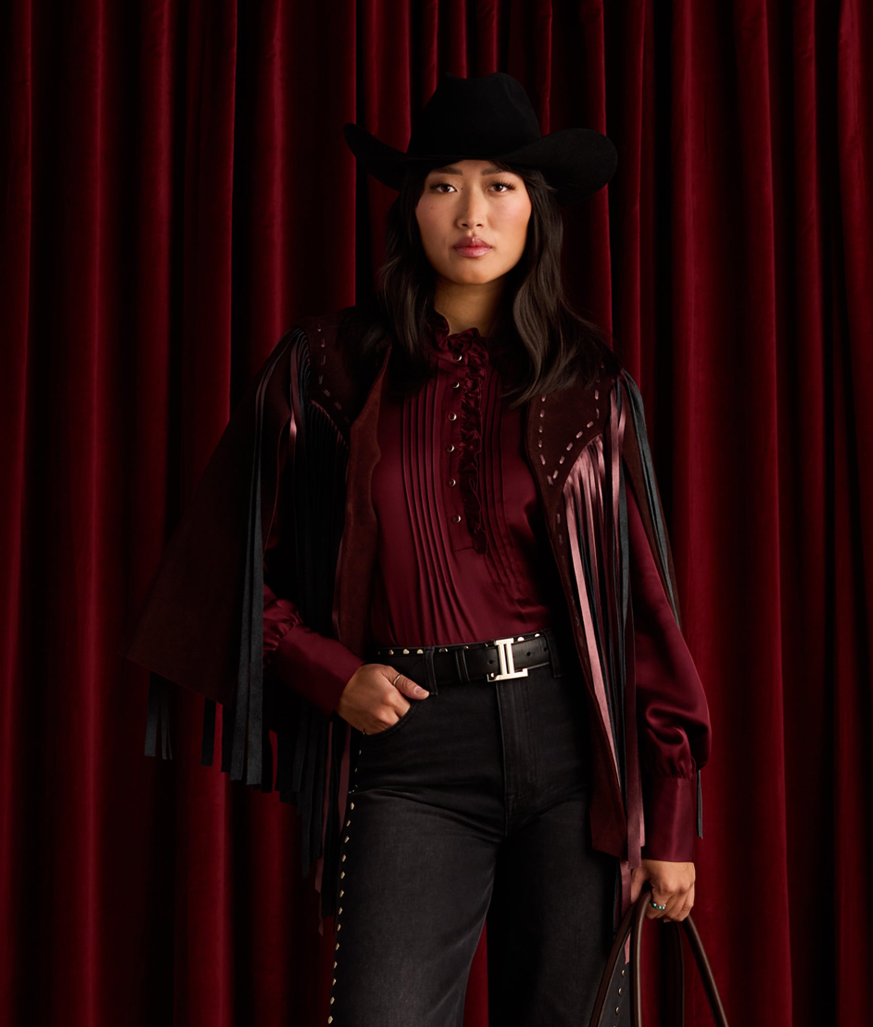 The Women’s Mirrored-L Belt elevates design. color. and style. Our signature gold-plated logo pays homage to 140 years of Lucchese craftsmanship and western high-fashion. A captivating piece made from rich tones of the finest Ranch Hand leather.